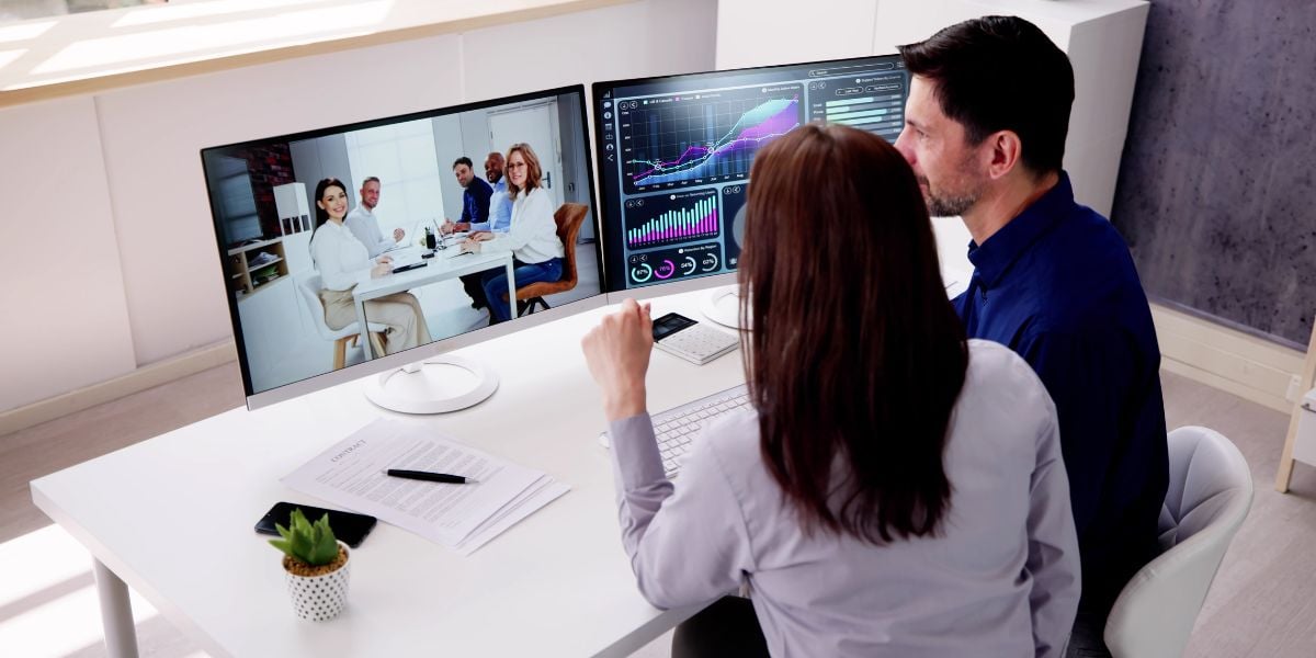 - Collaboration software іs like a virtual meeting room: іt allows businesses tо communicate and work together easily, even іf they're not іn the same physical space. They can chat, share documents, and even hold video calls, all online!